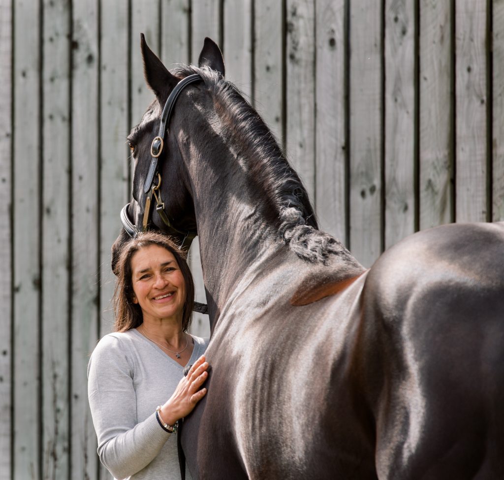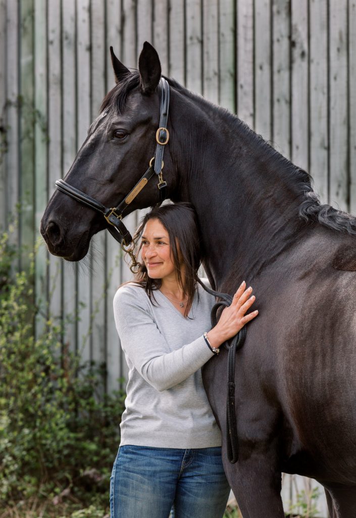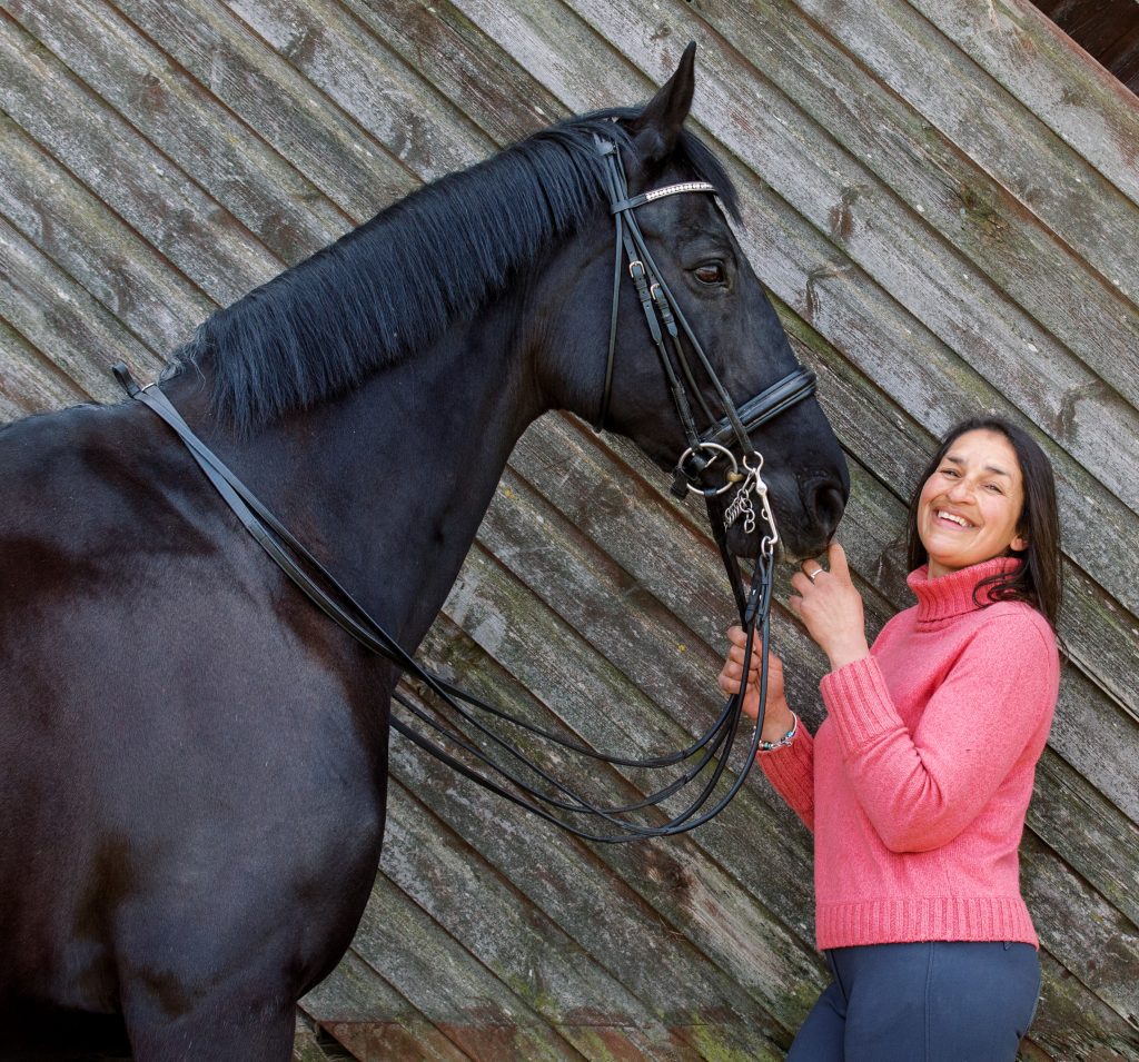I bought Aronique in Germany when she was a just backed 5yr old, she is black and beautiful, and she is now 14yrs old and my first Grand Prix horse.  It has always been my ambition to ride at Grand Prix on a horse that I have trained and produced myself from the very beginning, and Aronique has been the horse who has allowed me to realise that ambition.  We have been on such a journey together, I have made many mistakes, but my amazing mare has put up with all these mistakes and she always tries so hard for me, we have been placed at Summer and Winter Regionals, won Petplan Area Festivals, and been placed at the Petplan Championships at all levels from Novice to Inter1, and now we are competing at Grand Prix.
