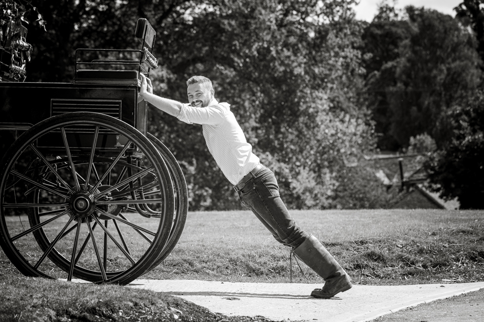 Simon owns 4 horses with his son Tom. Alongside hacking in stunning woodland at the back of their home in Oxfordshire, Simon and Tom drive two of their horses. We combined a portrait shoot around Simon and Tom’s home along with some special images of the harnesses horses with the passenger cart.